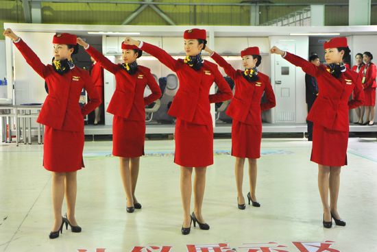 上海中等職業(yè)學(xué)校的學(xué)生在進(jìn)行一場(chǎng)航空乘務(wù)項(xiàng)目的比賽。