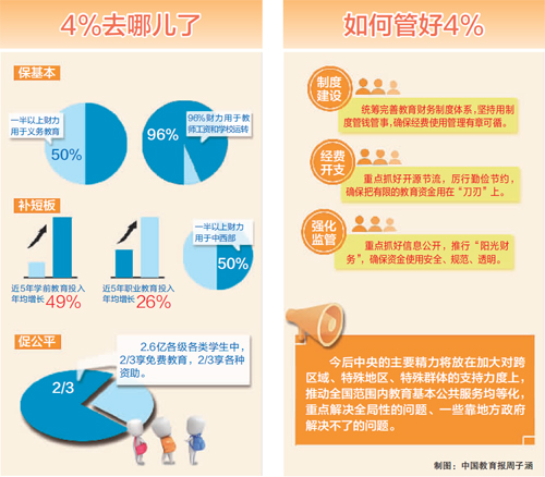4%是黨中央、國務(wù)院確定的目標(biāo),實(shí)現(xiàn)4%是我國教育發(fā)展史上的一個(gè)重要里程碑