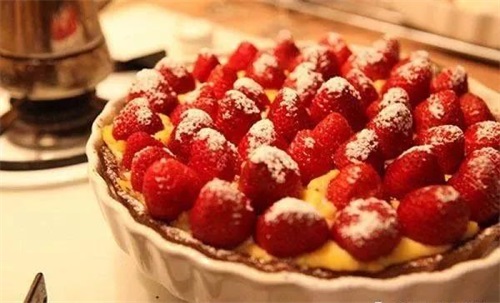 草莓撻中有時候放的是卡仕達奶油,有時候是滿滿的巧克力醬。很多人在法國買到的第一個甜品就會是草莓撻。
