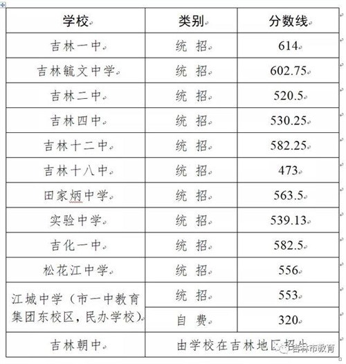 2020年吉林市中考城區(qū)高中錄取分數(shù)線發(fā)布
