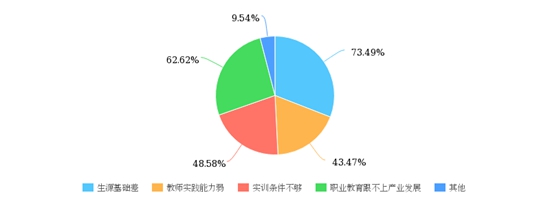 教師卷:您認(rèn)為高職教育的根本難點在于?1509位受訪教師,73.49%認(rèn)為是生源素質(zhì)差,其次是職業(yè)教育跟不上產(chǎn)業(yè)發(fā)展。(制圖:魏其濛 張茜)