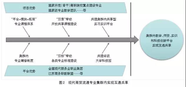 “產(chǎn)業(yè)鏈”思路和“崗位群”思路都應(yīng)當(dāng)遵循集中資源、整體優(yōu)化的原則,以集群建設(shè)進(jìn)一步緊密專業(yè)的吻合、以集群建設(shè)進(jìn)一步挖掘?qū)I(yè)的紅利。江蘇經(jīng)貿(mào)職業(yè)技術(shù)學(xué)院現(xiàn)代商貿(mào)流通專業(yè)集群的建設(shè),正是以2個(gè)國(guó)家示范(骨干)高職院校重點(diǎn)建設(shè)專業(yè)為核心,帶動(dòng)產(chǎn)業(yè)鏈相關(guān)專業(yè)協(xié)同發(fā)展。