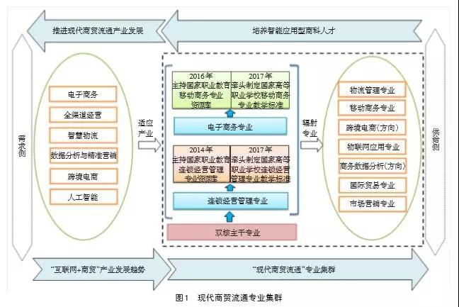在國(guó)家職業(yè)教育行業(yè)指導(dǎo)委員會(huì)的主導(dǎo)和支持下,在中國(guó)貿(mào)易促進(jìn)委員會(huì)、中國(guó)連鎖經(jīng)營(yíng)協(xié)會(huì)等行業(yè)協(xié)會(huì)的幫助下,現(xiàn)代商貿(mào)流通專業(yè)集群牽頭制訂移動(dòng)商務(wù)、連鎖經(jīng)營(yíng)管理國(guó)家專業(yè)教學(xué)標(biāo)準(zhǔn),主持建設(shè)連鎖經(jīng)營(yíng)管理、移動(dòng)商務(wù)國(guó)家級(jí)專業(yè)教學(xué)資源庫(kù)(“雙標(biāo)雙庫(kù)”),以“雙標(biāo)雙庫(kù)”為引領(lǐng)制訂契合現(xiàn)代商貿(mào)流通行業(yè)發(fā)展要求的人才培養(yǎng)方案、專業(yè)教學(xué)標(biāo)準(zhǔn)、頂崗實(shí)習(xí)標(biāo)準(zhǔn)以及實(shí)訓(xùn)裝備技術(shù)標(biāo)準(zhǔn),實(shí)現(xiàn)了集群內(nèi)教學(xué)、師資、實(shí)訓(xùn)和科技創(chuàng)新平臺(tái)的互通共享。
