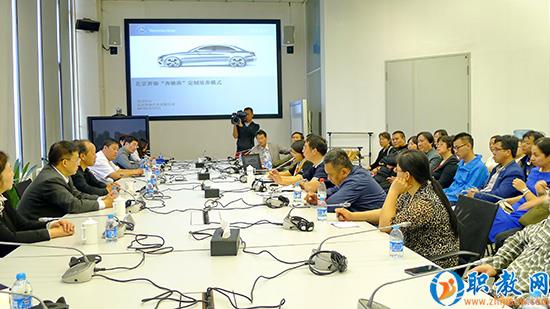 為貫徹落實(shí)國(guó)務(wù)院《加快發(fā)展現(xiàn)代職業(yè)教育的決定》要求,深化現(xiàn)代制造業(yè)領(lǐng)域的產(chǎn)教融合,建立職教集團(tuán)與大型企業(yè)新型合作關(guān)系和政校企行多元合作平臺(tái),在北京職業(yè)教育宣傳月內(nèi),市教委委托北京現(xiàn)代制造職教集團(tuán),組織本市23所中高職院校校長(zhǎng)和骨干教師,于5月7日走進(jìn)了位于亦莊的北京奔馳汽車(chē)有限公司。