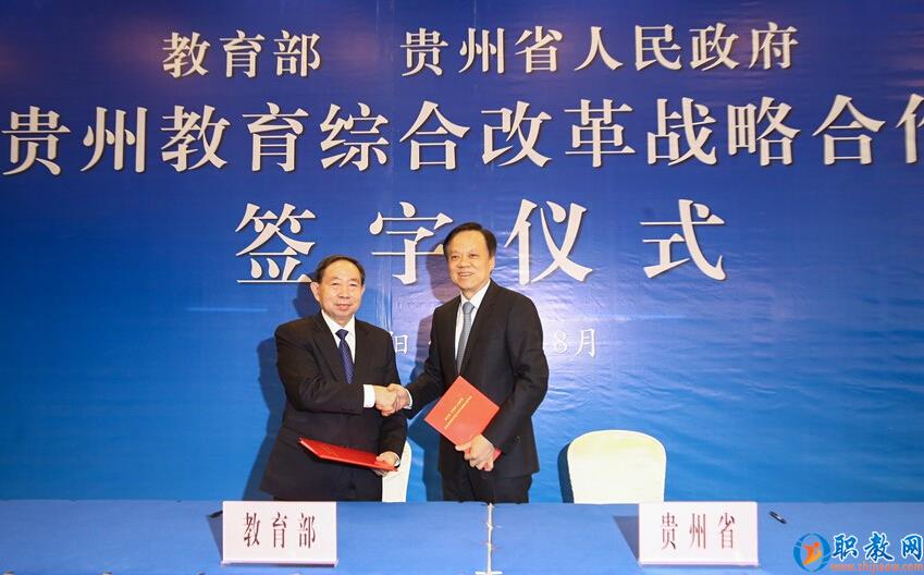 8月2日,教育部、貴州省深化貴州教育綜合改革戰(zhàn)略合作協(xié)議簽字儀式在貴陽舉行。教育部部長袁貴仁,貴州省委書記、省長陳敏爾代表雙方簽署協(xié)議并講話。